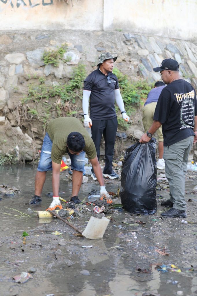 Hodi prevene moras no mΓ³s inundasaun iha tempu udan, Prezidente Autoridade Munisipiu Dili, Sr. Francisco dos Santos hamutuk ho FunsionΓ‘riu sira hala’o asaun limpeza jerΓ‘l hosi Mota Maloa to’o Γ‘rea Aitara-Laran, Dili.