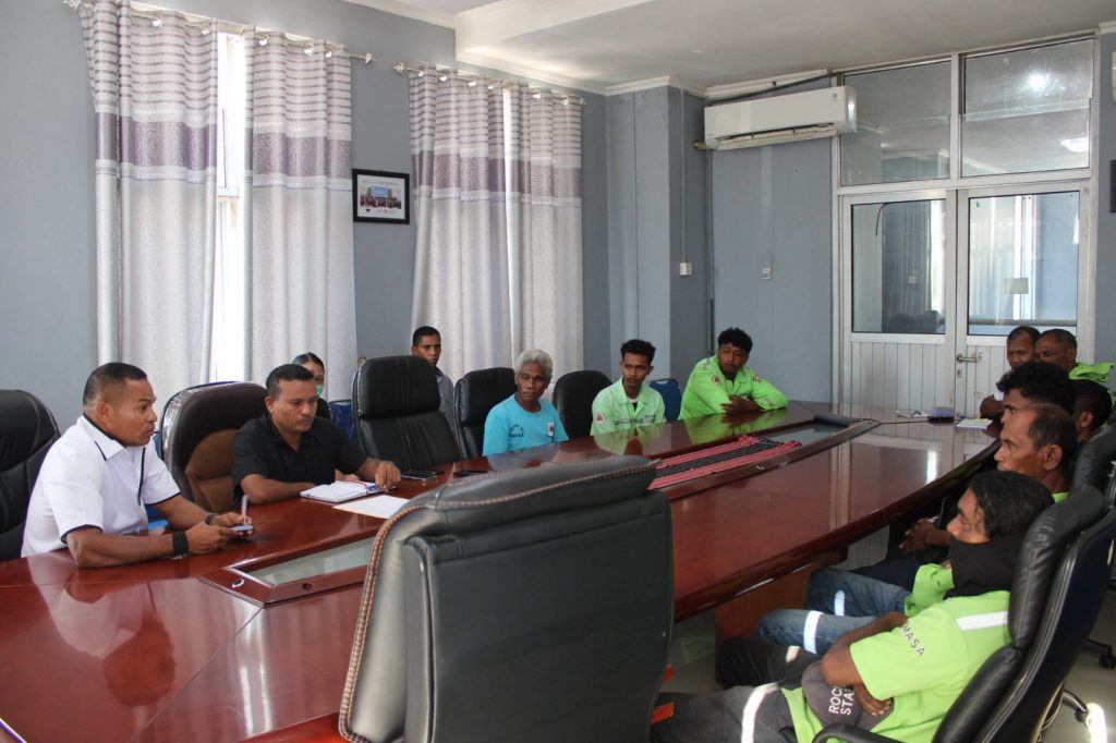 Prezidente Autoridade Munisípiu ( PAM) Dili, Sr. Francisco dos Santos, hala’o enkontru ho Diretór Servisu Munisipal Água no Saneamentu Ambiental (SMASA), Sr. Domingos Godinho, no ekipa kobransa sintina públiku, hodi diskute kona-ba melloramentu jestaun no prestasaun servisu iha fatin sintina públiku sira iha Munisípiu Dili.