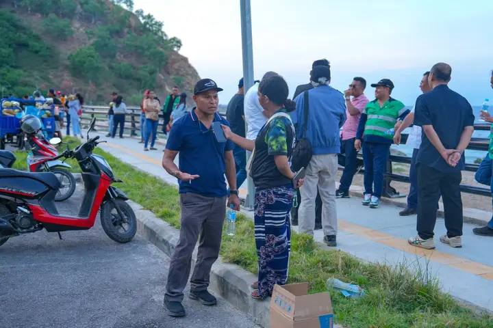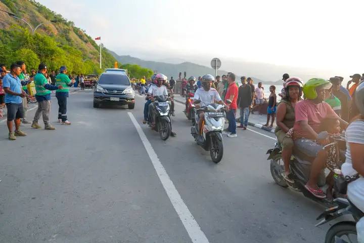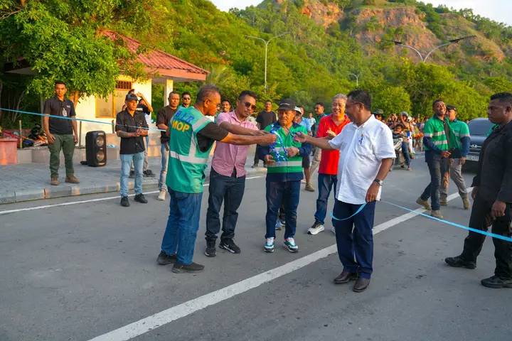 Prezidente Autoridade Munisรญpiu(PAM) Dรญli,Sr. Francisco dos Santos akompanha, Ministru Obras Pรบblicas, S.E. Samuel Marรงal, Vise-ministru Infraestrutura, Jรบlio do Carmo ho Sekretรกriu Estadu Eletrisidade รgua e Saneamentu, Santos Noronha, lori IX Governu Konstitusionรกl nia naran loke provizoriu ba pรบbliku estrada Kristu Rei-Dolok-Oan liga ba Hera hodi fasilita Komunidade sira hodi selebra Natรกl no Tinan Foun.