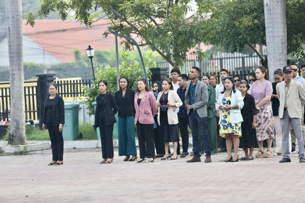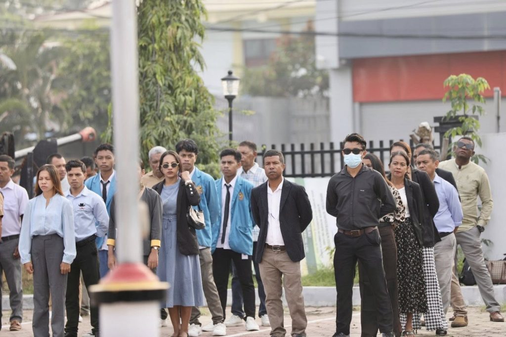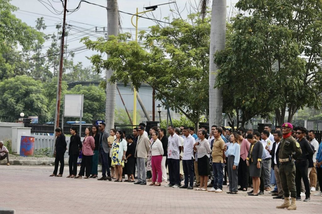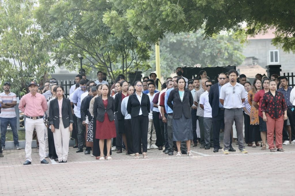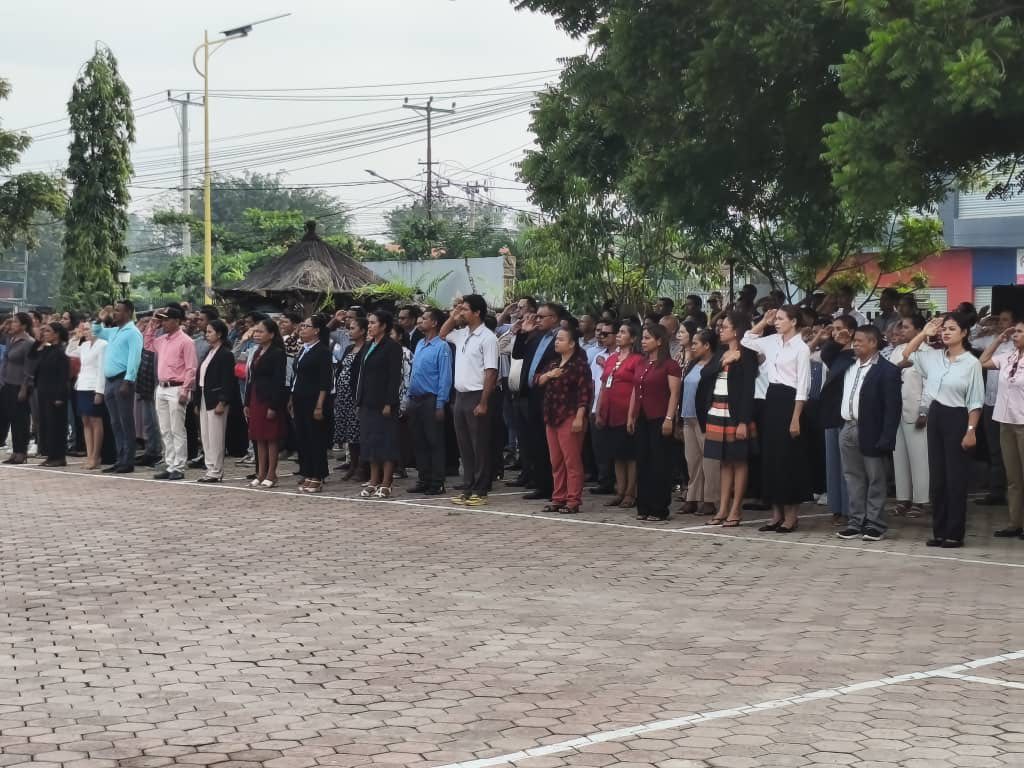 Entertantu seremonia Isar Bandiera ne marka prejensa husi Administrador Postu Administrativu nain lima, Diretores Munisipais sira, Kargu xefia, Sefe Suku no funsionรกriu tomak Autoridade Munisรญpiu Dili nian.